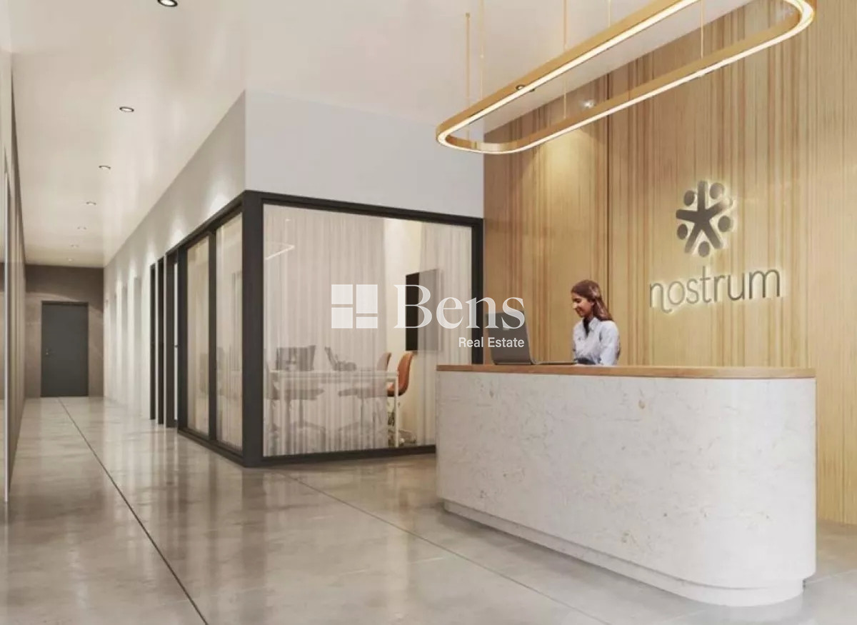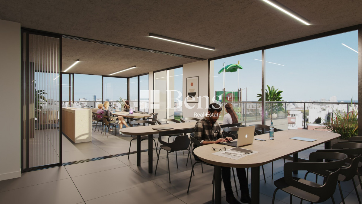 El hall de acceso sobre la calle Pablo de Mar铆a, cuenta con una sala de reuniones, y se comunica con el n煤cleo de circulaci贸n vertical, el cual tiene 3 ascensores de 煤ltima generaci贸n. A nivel de planta baja tambi茅n se encuentra un local comercial de grandes dimensiones con acceso sobre la Avenida 18 de Julio.